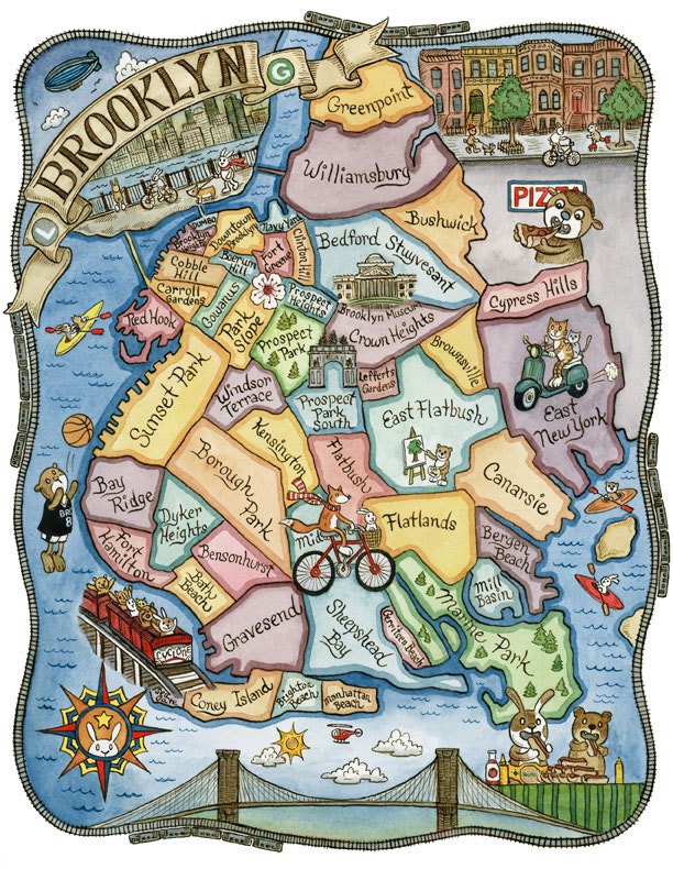 Brooklyn New York Map Art Print 8 X 10 Etsy