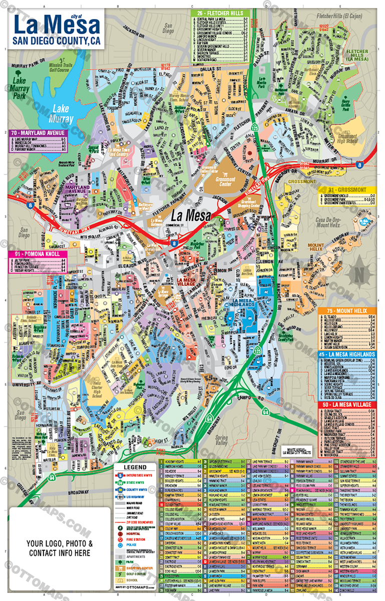 La Mesa Map, San Diego County, CA โ Otto Maps