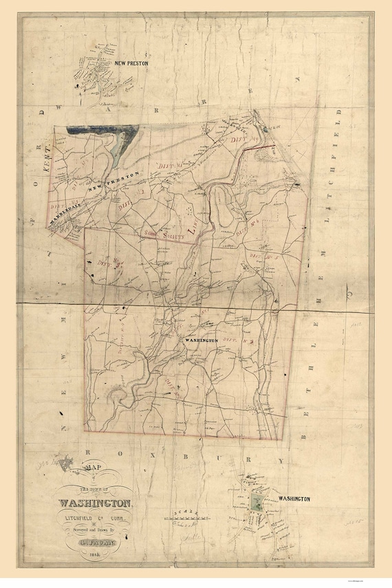 Washington Connecticut 1853 Old Map Reprint Homeowners Names CT