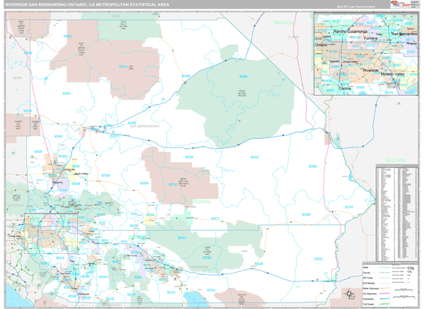 Riverside San Bernardino Ontario, CA Metro Area Zip Code Wall Map
