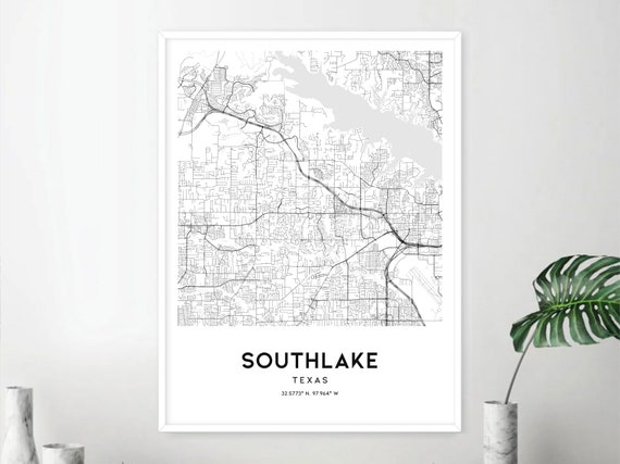 Southlake Map Print, Southlake Map Poster Wall Art, Tx City Map