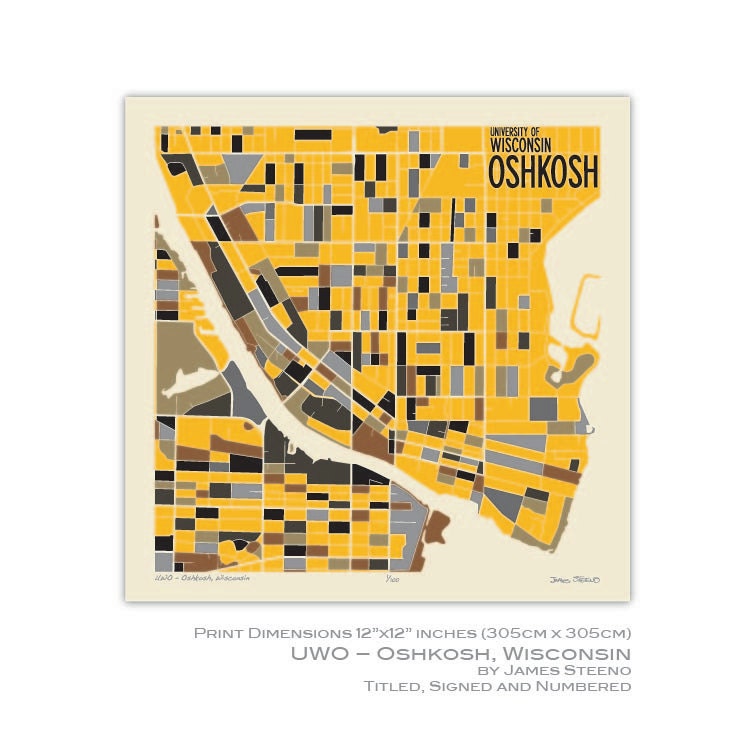 UWO Oshkosh, Wisconsin University Campus Art Map Print UW OH by