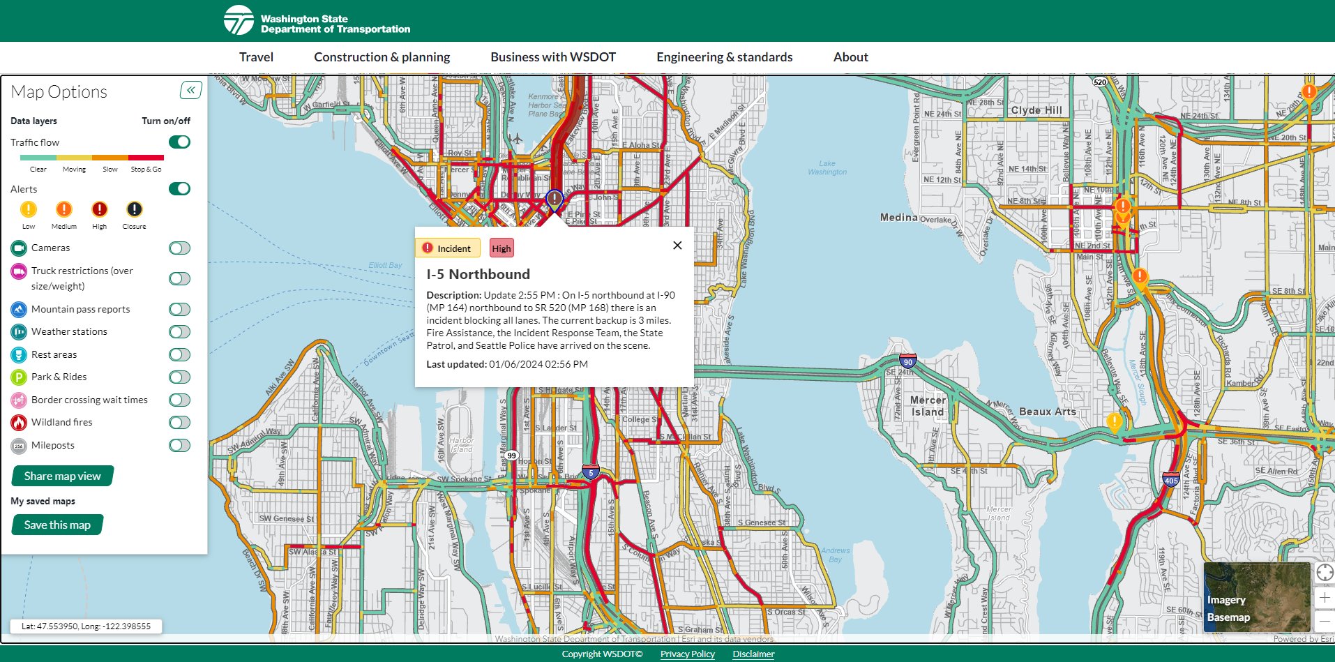 Washington State Department Of Transportation Traffic Map – RICHLAND, Wash. – Drivers are experiencing delays getting onto I-182 from SR 240 in Richland, according to NonStop Local staff in the area and the Washington State Department of Transportation’s . The Washington State Transportation Commission announced Tuesday it will be surveying ferry riders โ including those on the Edmonds-Kingston route โ in late July/early August about their .